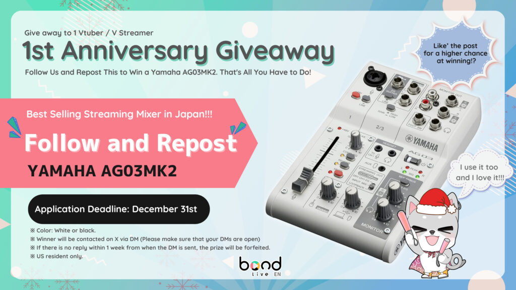It has been one year since we started operating as an agency for IRIAM. So We will be holding an agency event starting in December, called the 5th bondlive EN “VStreamer Cup”🎉🎉🎉